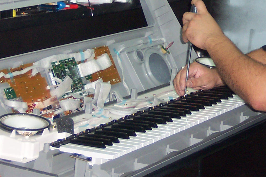 Mantenimiento y reparación de instrumentos musicales electrónicos: teclados, pianos, órganos, sintetizadores, controladores, interfases, pedales, efectos, guitarras, bajos, módulos, percusión y drums, etc. de diferentes marcas.